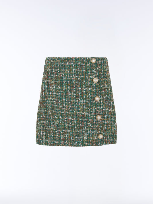 Pearl-Button Metallic Thread Bouclé Tweed Mini Skirt in Emerald Green