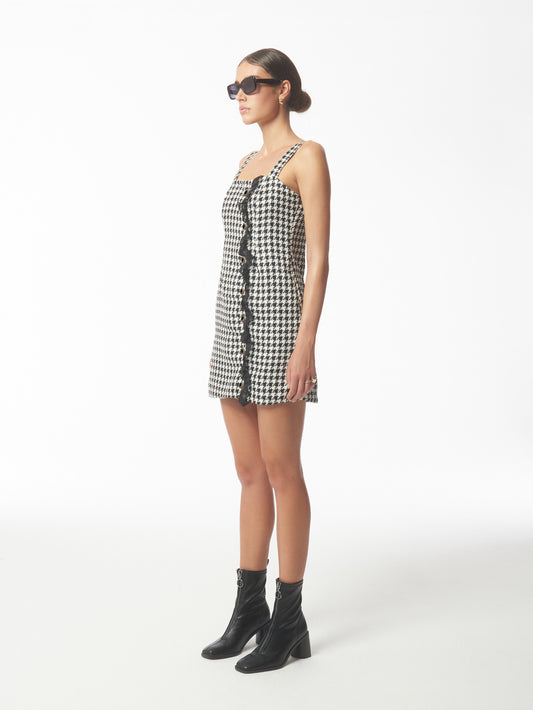 Sequined Houndstooth Bouclé-Knit Mini Dress In Black And White