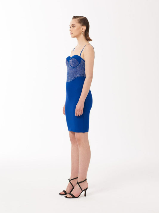 Studded Sheer Knit Mini Jumper Dress in Midnight Blue