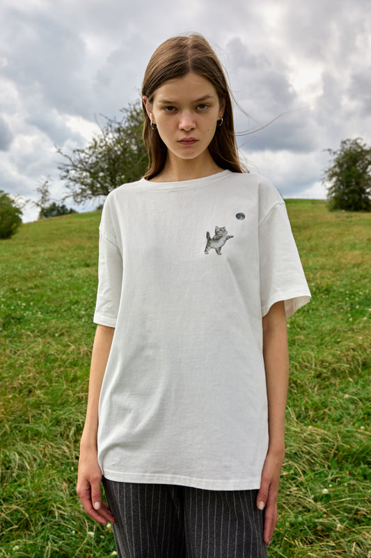 Bear and Unknown Planet Print Unisex T-Shirt in White