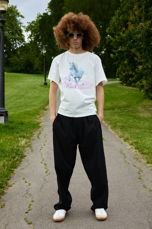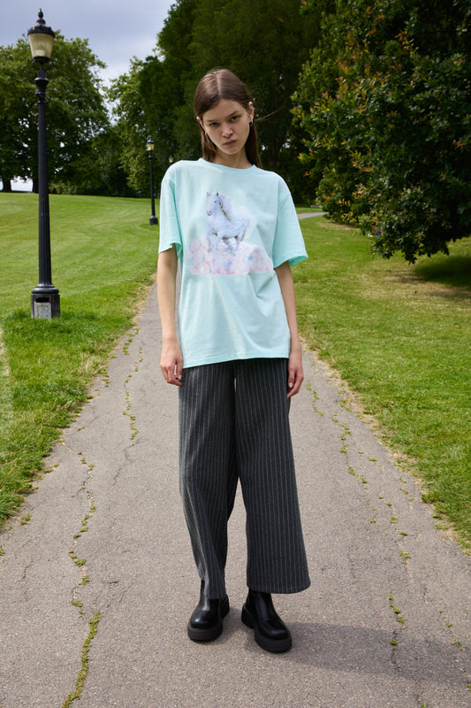 White Horse Print Unisex T-Shirt in Light Mint Green