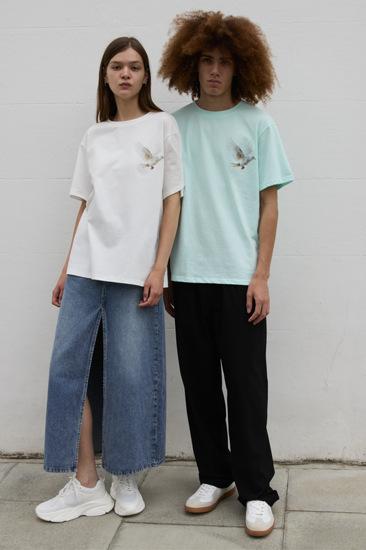 Flying Dove Print Unisex T-Shirt in Light Mint Green