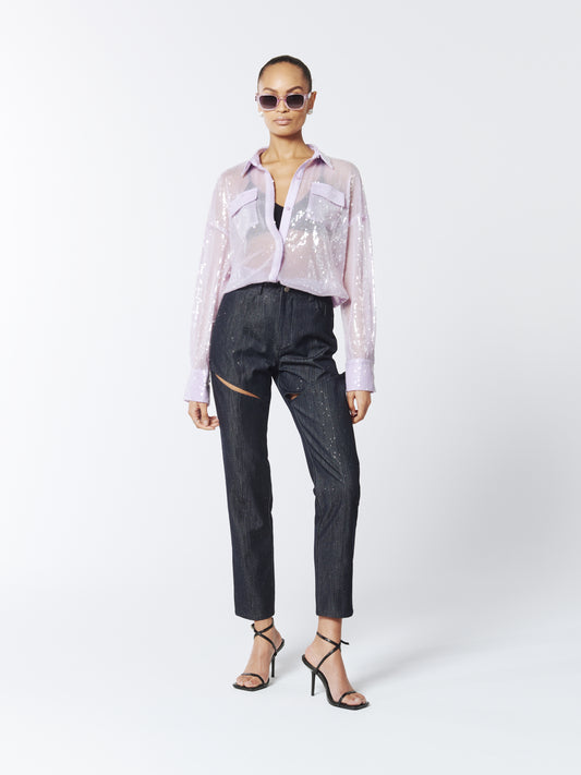 Composite Sparkly Denim Bustier Blouse in Profound Blue