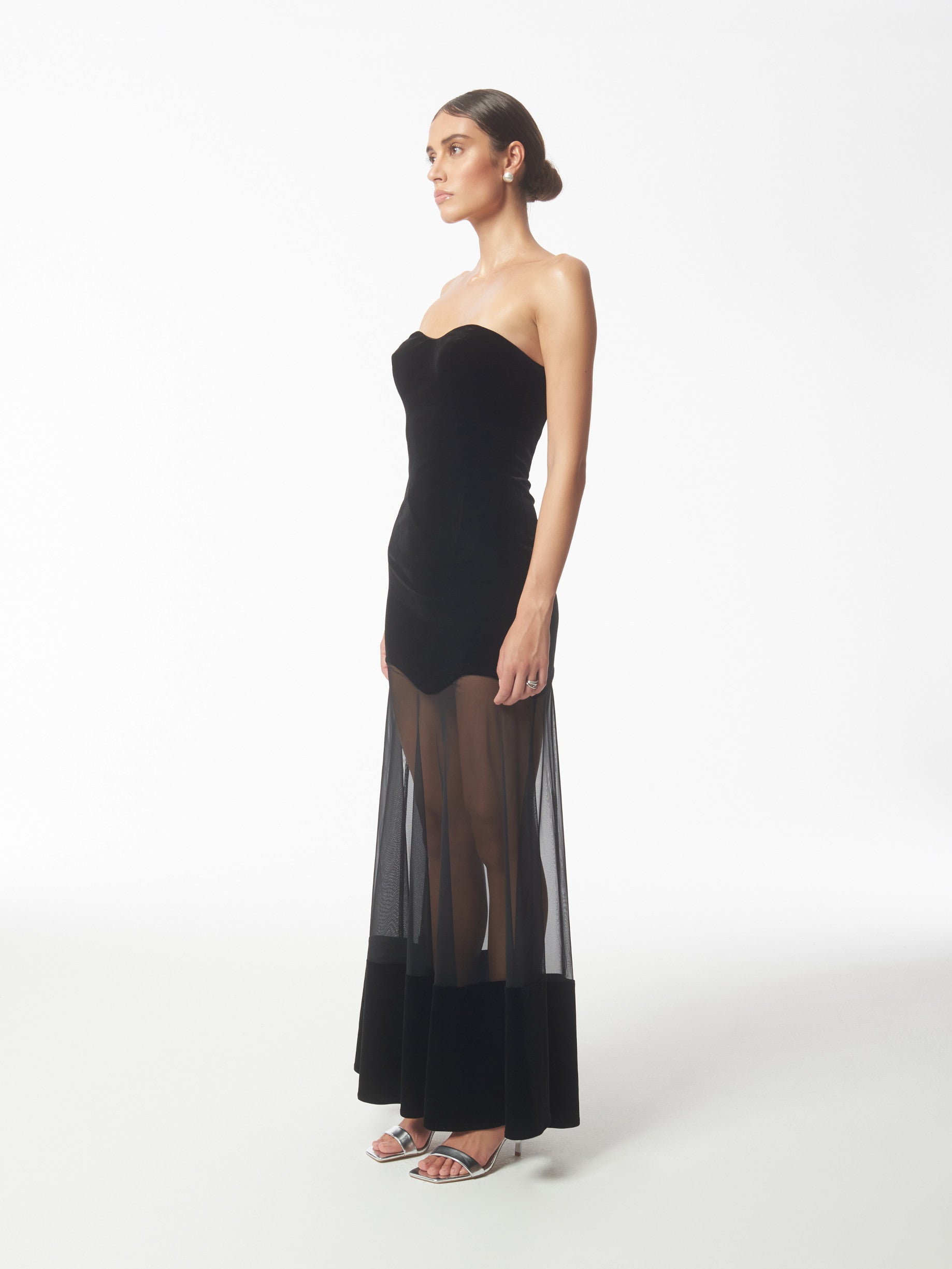 Highlights of Bustier Velvet and Mesh Gown in Black