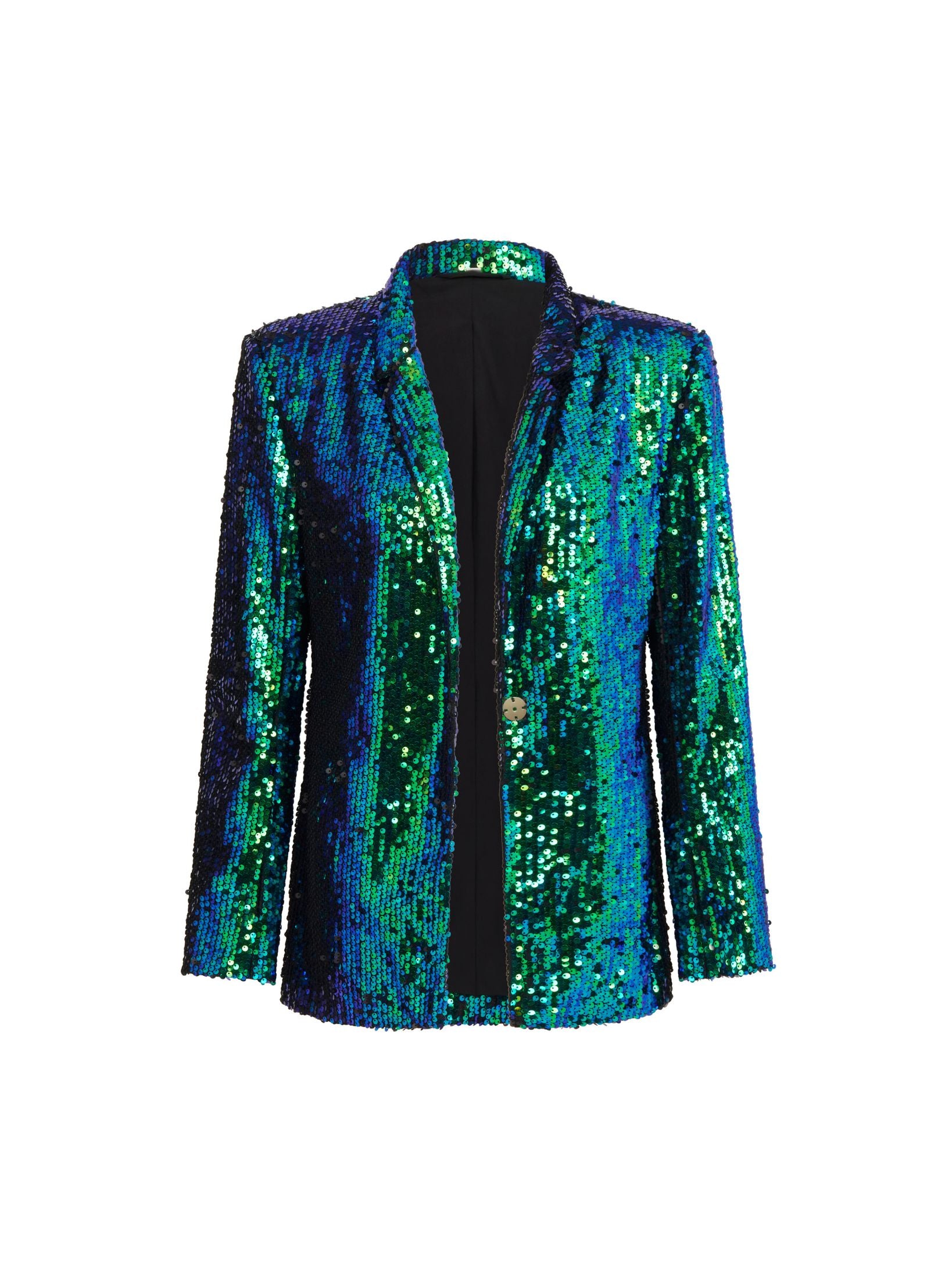 Highlights of Iridescent Sequin Blazer in Green Peafowl